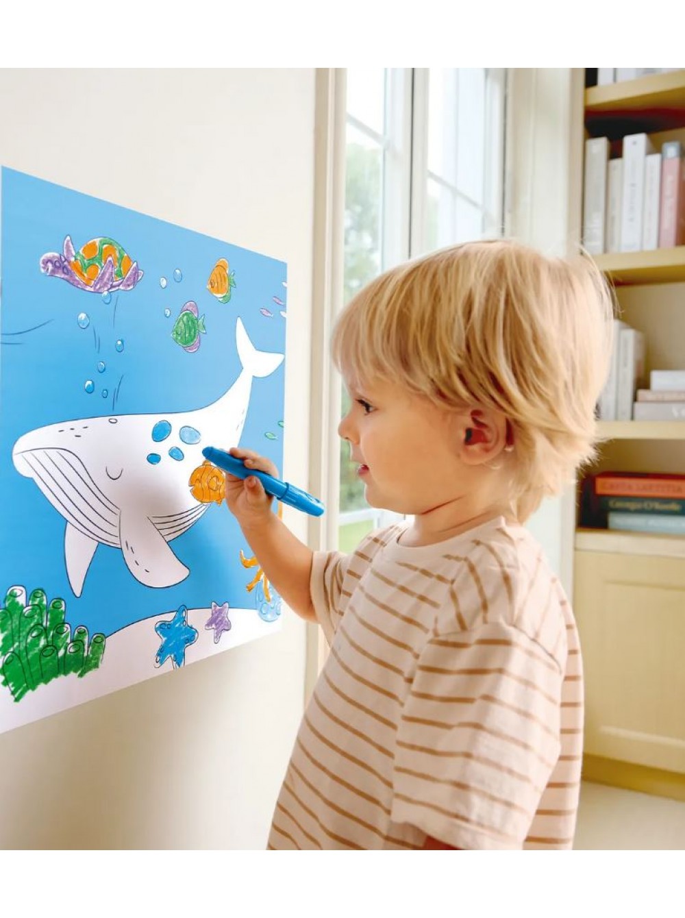 Приготовьтесь отправиться в мир творчества и фантазии вместе с набором для раскрашивания "Раскрась подводный мир!" Более пяти метров специальной бумаги и четыре восковых карандаша откроют простор для детского воображения. Юные художники смогут создать собственный уникальный мир морских обитателей, разукрасить его яркими красками и превратить свои шедевры в наклейки или аппликации.