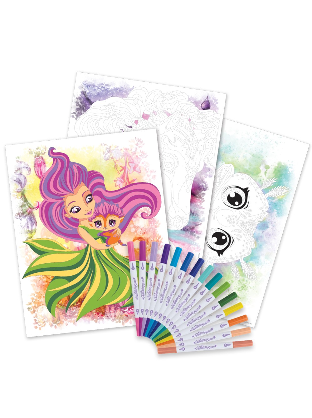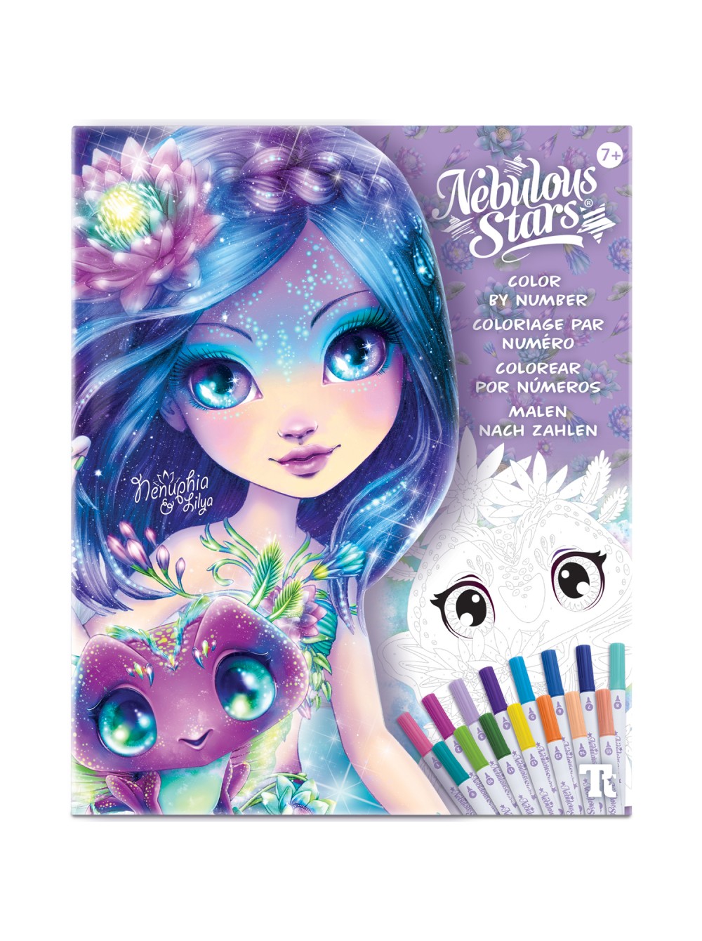 Набор для рисования по номерам с помощью пронумерованных фломастеров, входящих в набор. Создание иллюстраций с изображением питомцев звёздочек Туманной галактики Nebulous и их питомцев по готовым эскизам, при выборе цвета руководствуясь номерами, указанными на рисунках. В набор входит история звёздочки Nenuphia и её питомицы.