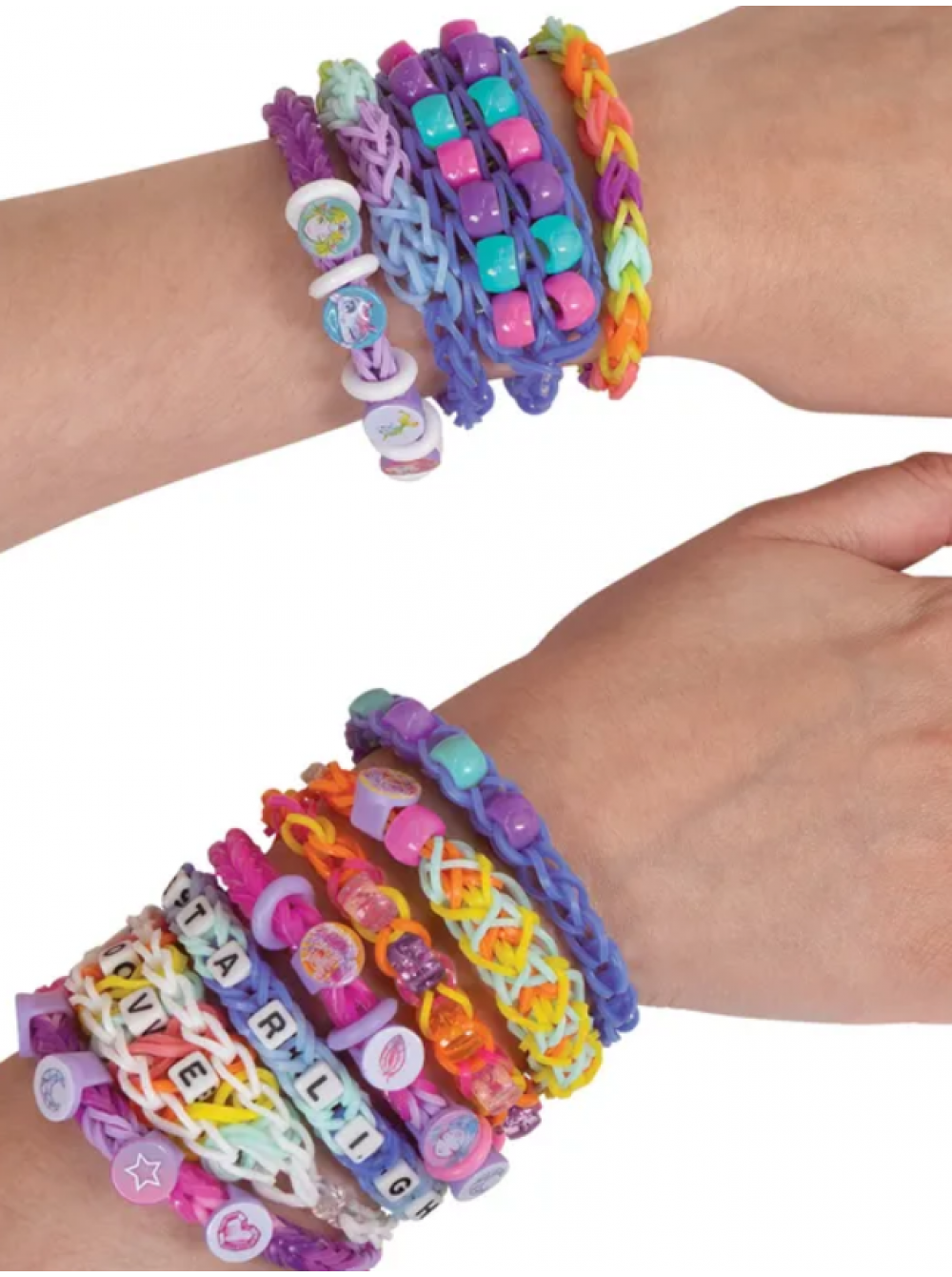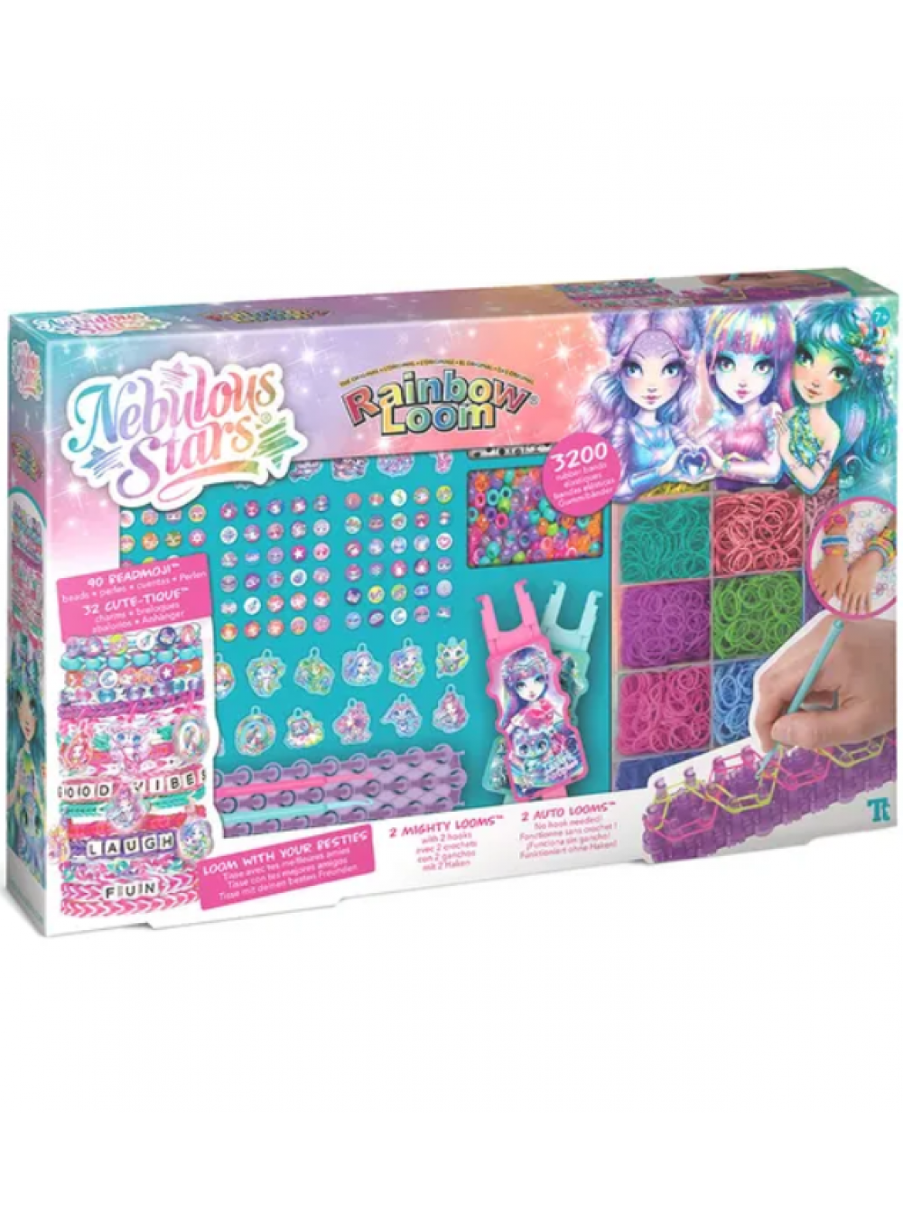 Создавайте восхитительные браслеты! Благодаря двум большим станкам и двум автоматическим мини-станкам процесс становится быстрым и веселым занятием. Комплект дополнен эксклюзивными подвесками Nebulous Stars и яркими шармами для космических шедевров.