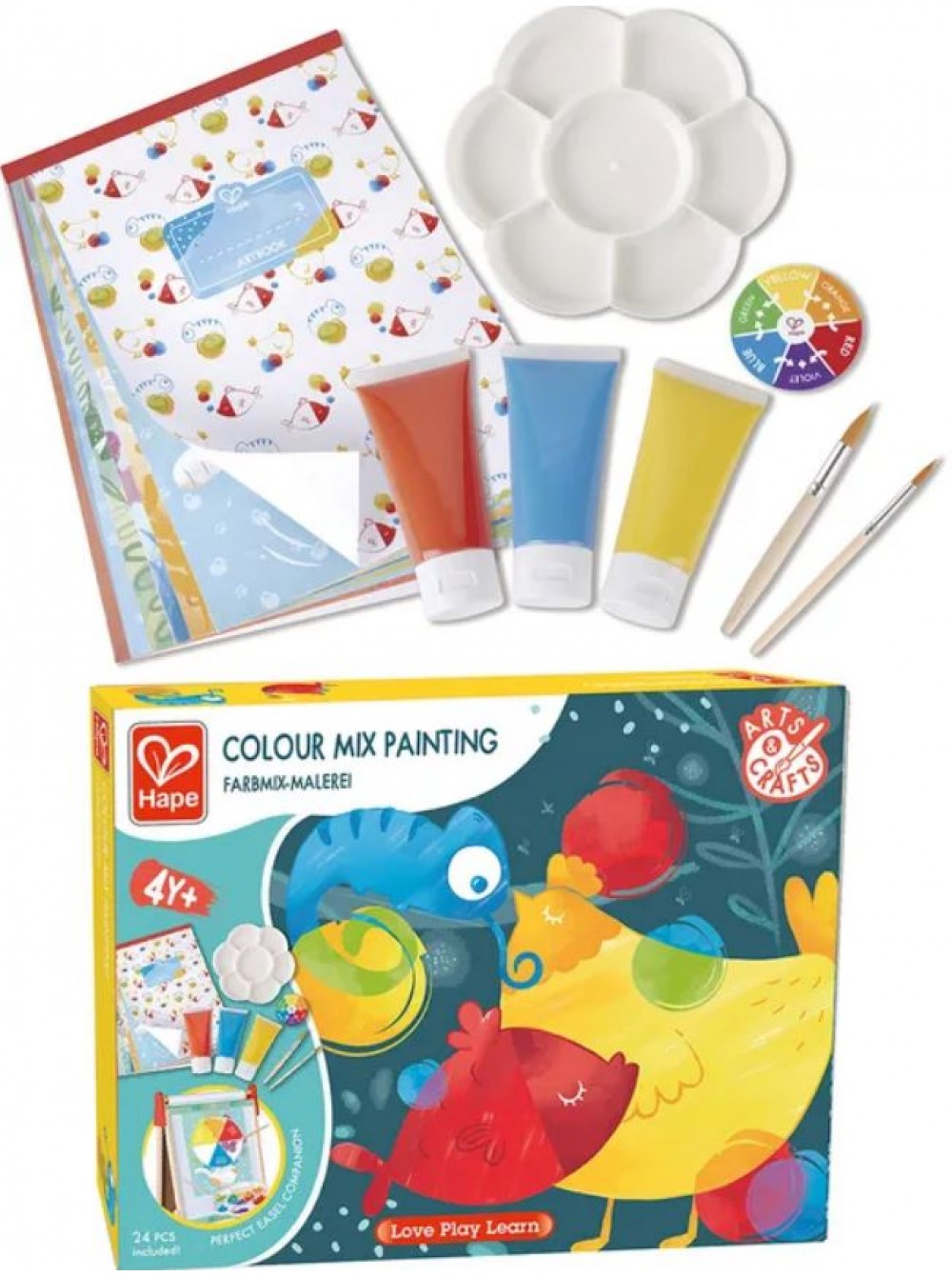 Изучите захватывающие принципы смешивания цветов и узнайте все о цветах с помощью этого замечательного набора для рисования! Получайте удовольствие, выполняя шесть заданий альбома. Включает зажим для переплета, чтобы скрепить ваши произведения искусства. Идеально подходит для использования на мольбертах Hape!