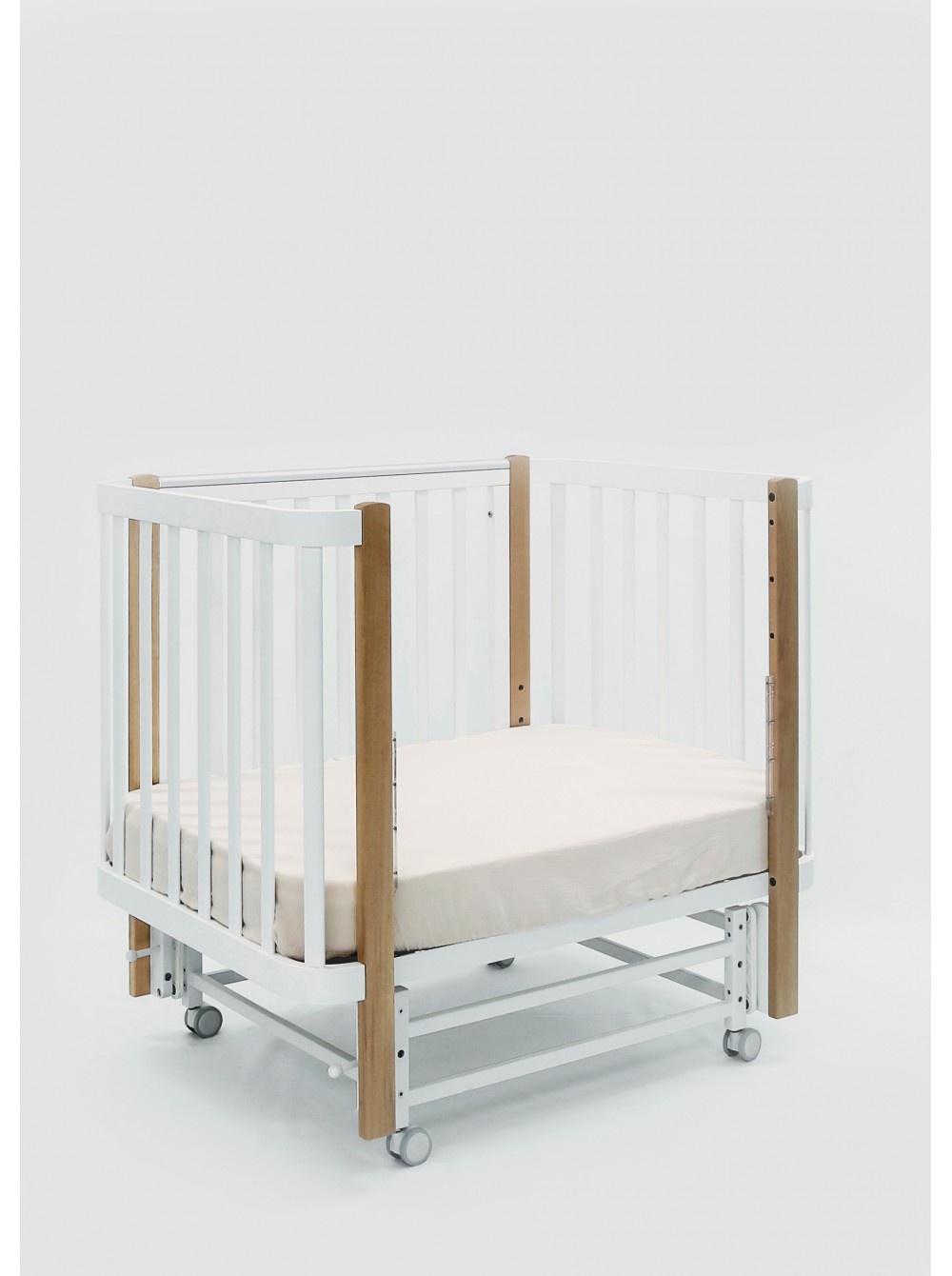 Детская кровать-люлька 100х70 см. маятник+ колесо Antemi "Terra Light" цвет: белый/дерево