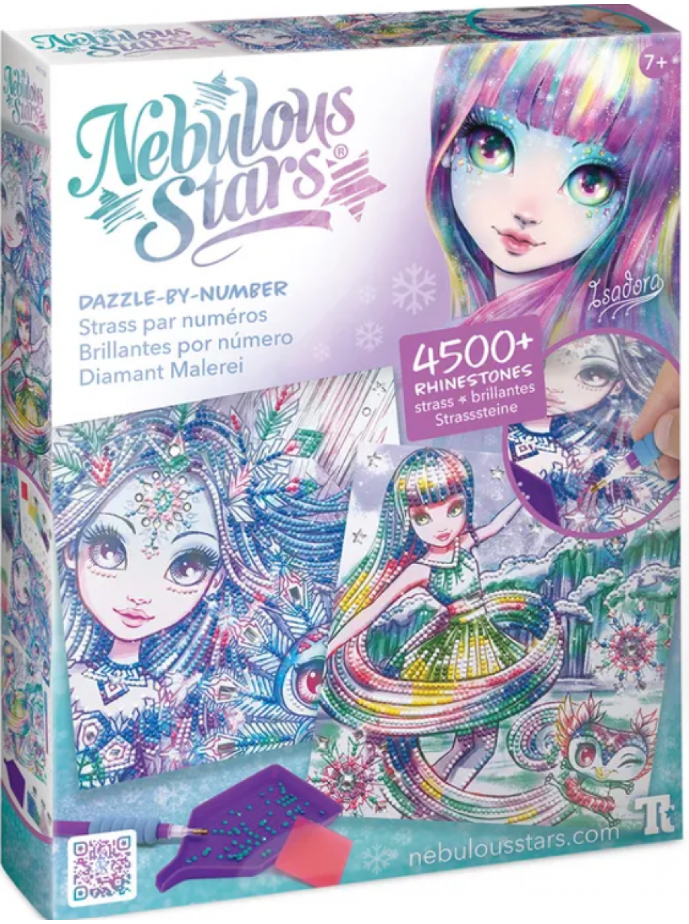 Комплектация: 2 картины для декорирования, более 4500 страз, аппликатор для стразов, поддон для стразов и восковой квадрат, полная история звездочки Isadora, инструкция