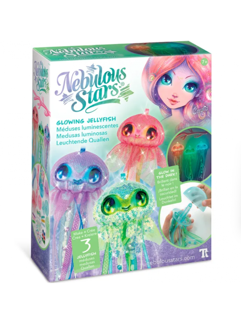 Комплектация: 3 купола, светящихся в темноте, вешалка в виде коралловой ветки, 3 тканевых чехла на купол, 63 бусинки, светящихся в темноте, 70 разноцветных бусин, 3 сетчатых шнура, лента, завязки, светящиеся в темноте и эластичный шнурок, 3 блестящие наклейки, полная история звездочки Coralia, инструкция.