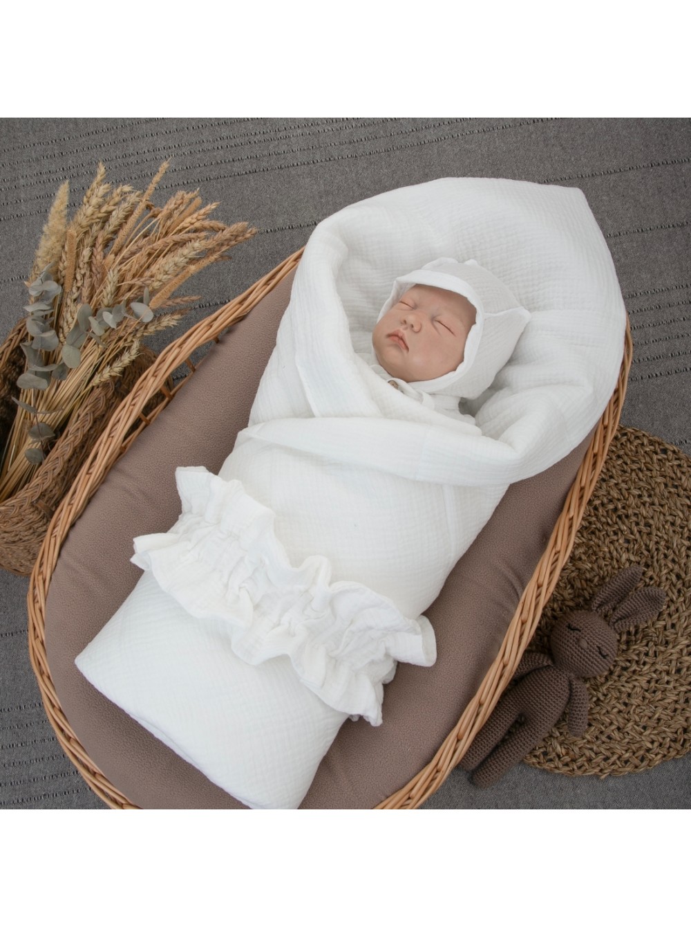 Летнее одеяло конверт Муслин №4 с лентой на резинке – идеальный вариант для выписки из роддома.