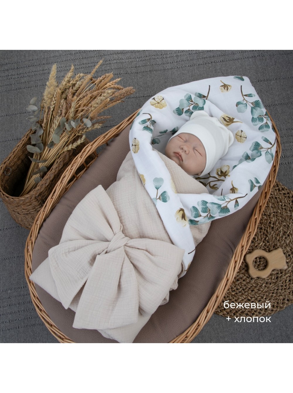 Летнее одеяло конверт Муслин №6 с бантом на резинке – идеальный вариант для выписки из роддома.