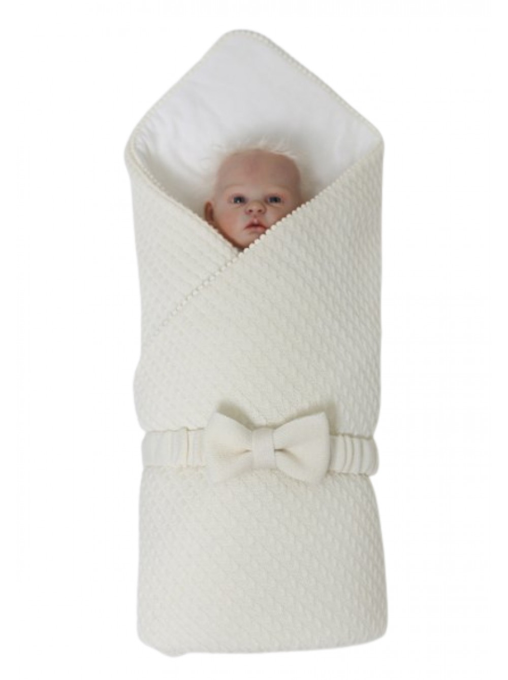 Практичный плед , выполненный из высококачественного вязаного полотна с подкладкой из 100% хлопка и утепленный гипоаллергенным полоном Holcon, послужит вам изящным конвертом для церемонии выписки из роддома . В комплекте с пледом мы предлагаем поясок с бантом и, дополнительно, плед можно украсить уголком с кружевом .