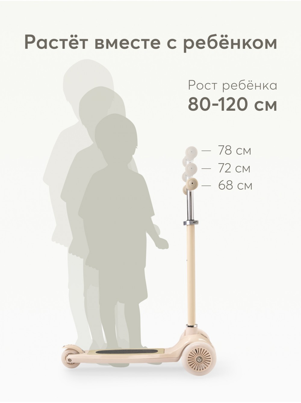 Детский трехколесный самокат от Happy Baby создан специально создан для малышей. Высоту руля легко регулировать в зависимости от возраста и роста ребенка. Резиновые грипсы обеспечивают надежный хват, а три колеса добавляют устойчивости. Задний тормоз поможет остановиться, а колеса из полиуретана