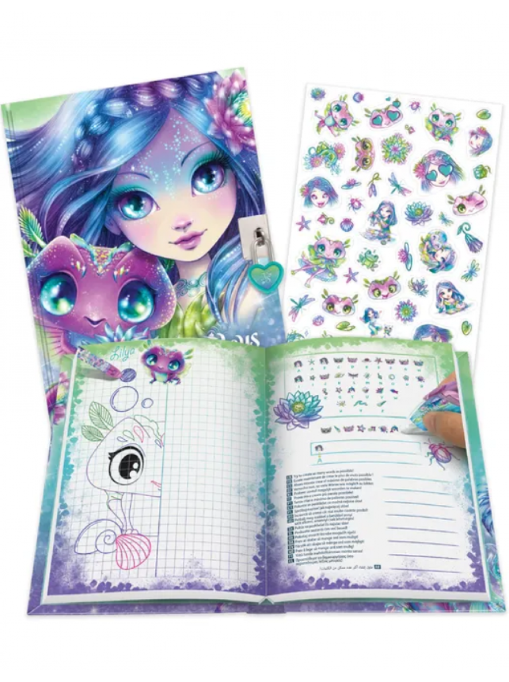 Большой канцелярский набор с личным дневником. Твоя любимая звёздочка Nenuphia приготовила тебе полный комплект канцелярских товаров (ручка, ластик, точилка, линейка, цветные стикеры, блокнот) и личный дневник для хранения секретов, на замочке. Звёздочка выслушает все твои секреты, пока ты будешь записывать наблюдения и события, решать интересные задания, играть, декорировать странички. Оставляя дневник, закрой его на замочек, чтобы никто не был посвящён в твои тайны. Обязательно познакомься с историей звёздочки Nenuphia, узнай ее философию.